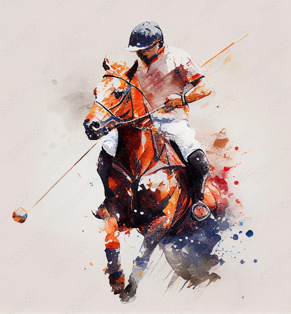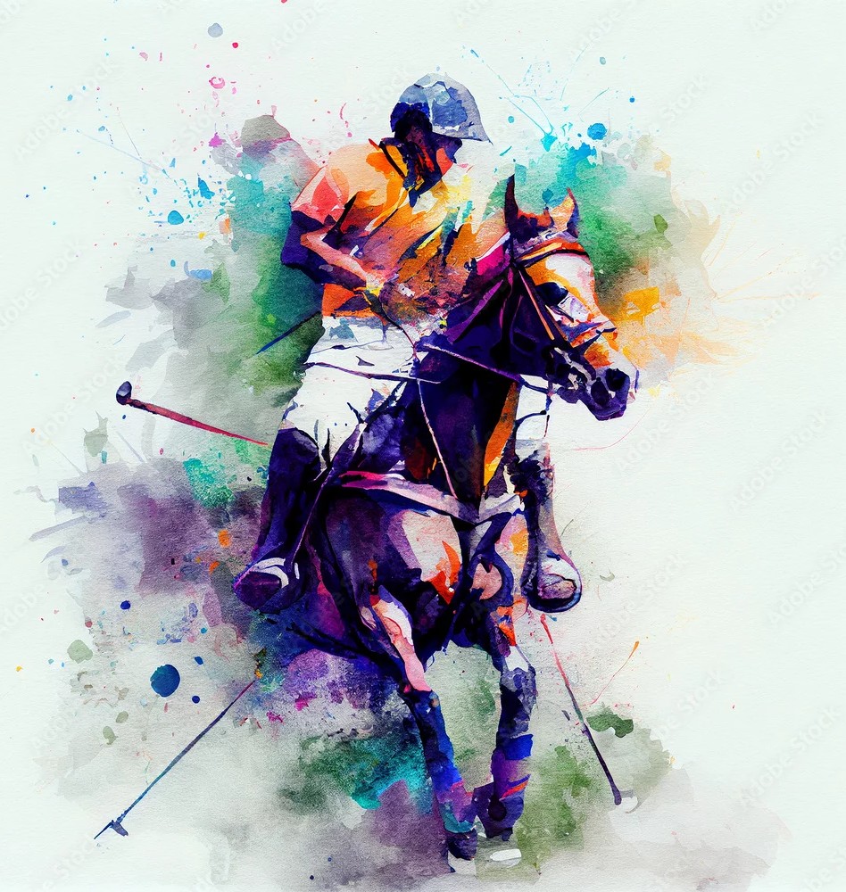 An expressive artwork portraying a polo player charging forward, blending bold colors and energetic strokes to convey the thrill, focus, and power of the game.